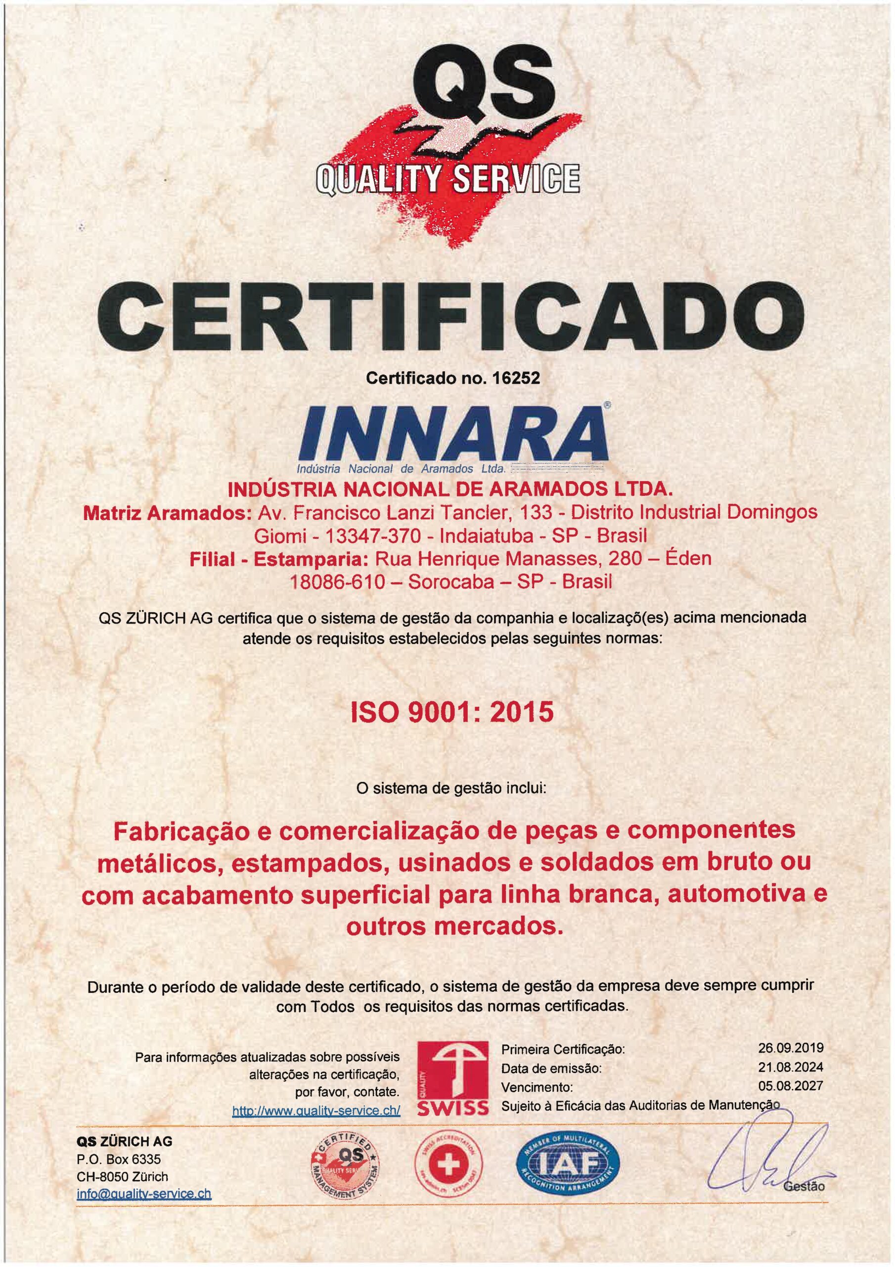 A INNARA busca fornecer aos seus clientes e parceiros produtos e serviços que atendam os requisitos das partes interessadas, através da busca constante por melhoria dos processos e robustecendo o Sistema de Gestão da Qualidade melhorando continuamente a sua eficácia. Ser referência em seus segmentos de atuação, sendo admirada pela excelência em produtos e serviços, e reconhecida como uma marca forte e inovadora. Atendemos hoje uma grande gama de clientes, que possuem requisitos cada vez mais exigentes. É nesta exigência que trabalhamos: na busca pelo atendimento, desde capacitação especifica, passando por ferramentas automotivas (core tools) e demais certificações (nacionais e internacionais). Prezamos também pela parte social, onde mantemos rigorosos controles ambientais, de saúde e segurança, cumprindo requisitos legais e específicos de nossos clientes, com foco na excelência no atendimento aos nossos colaboradores, parceiros comerciais e consumidor final.